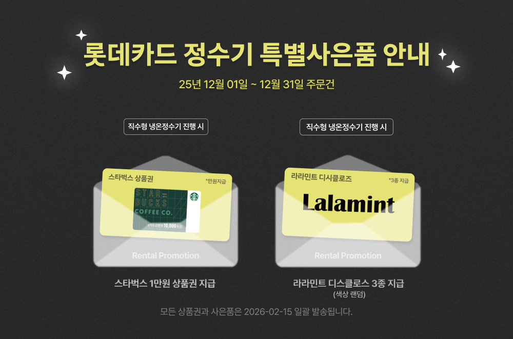 - 자동납부로 등록된 카드를 재발급 받을 경우, 해당 렌탈사업자에 연락하시어 재발급 받은 카드로 자동납부를 변경하셔야 계속 혜택을 받을 수 있습니다.