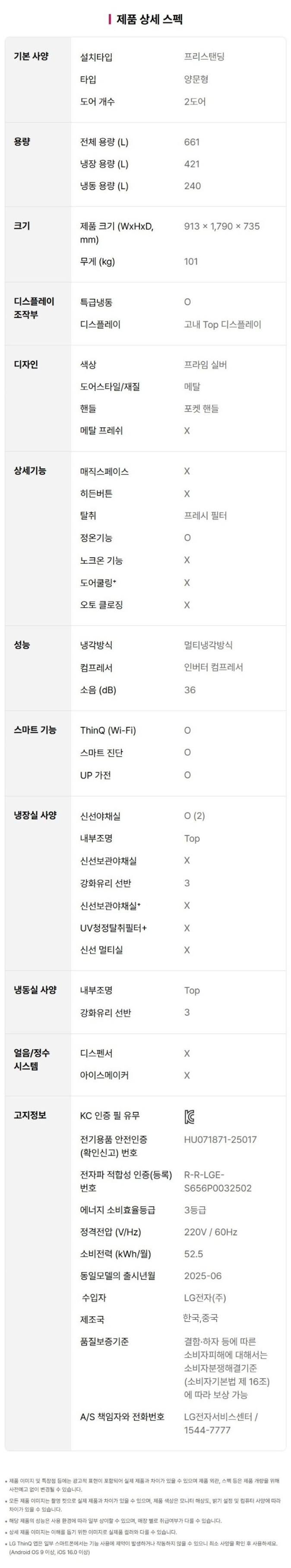 [주간특가] LG 디오스 AI 오브제컬렉션 냉장고 661L 프라임실버