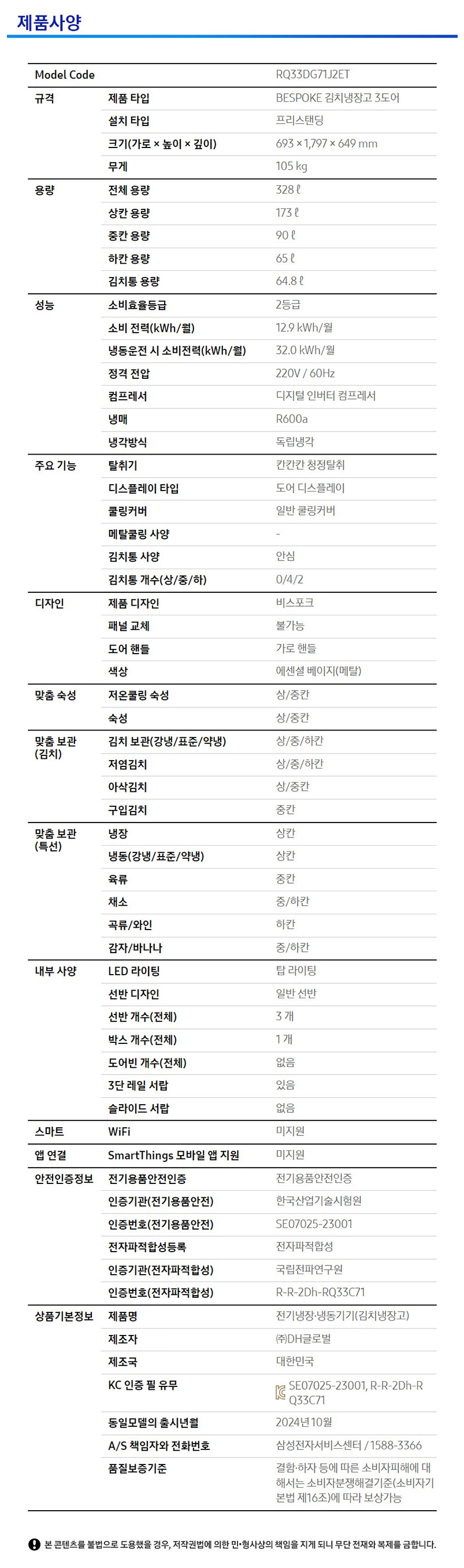 [주간특가] 삼성전자 비스포크 김치플러스 328L 스탠드형 3도어 김치냉장고 에센셜베이지
