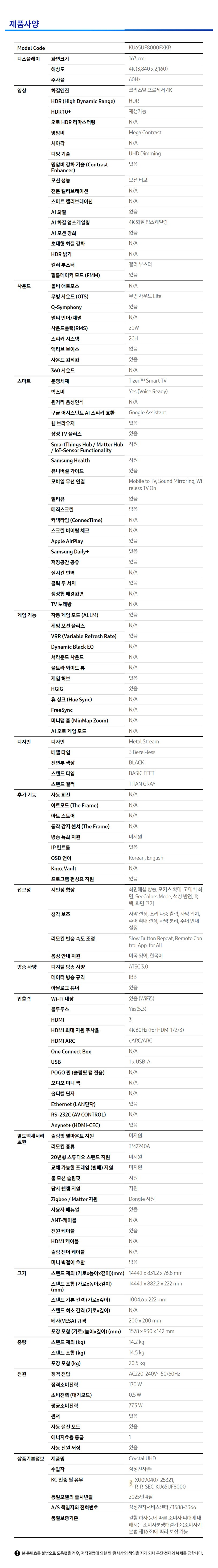 [주간특가] 삼성전자 25년형 4K UHD Crystal TV 65인치